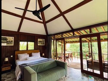 A room with a view ! Set in 1 hectare of organic gardens and coffee trees, . The rooms are made of teak wood. with a modern bathroom, King size bed, out door terrace to enjoy the nature of Bali and a refrigerator to keep those essentials cold.